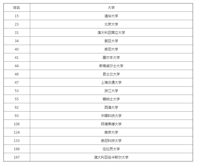 2021QS世界大学排名TOP200上榜的澳洲和中国内地大学有: